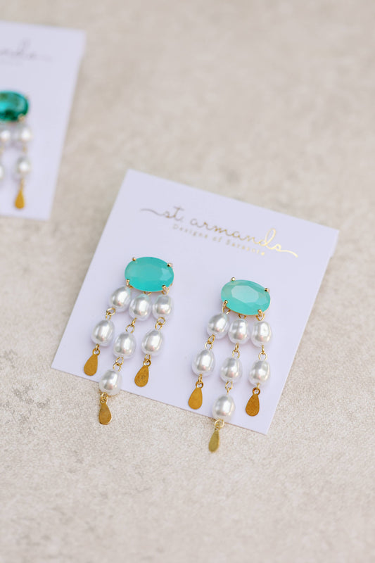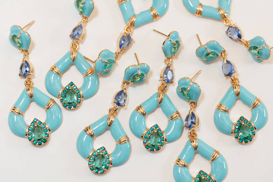 Aegean Dream Crystal Turquoise Teardrop Statement Earrings