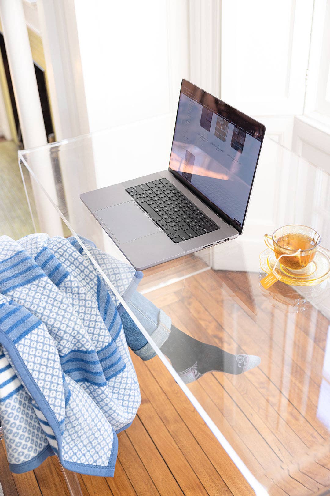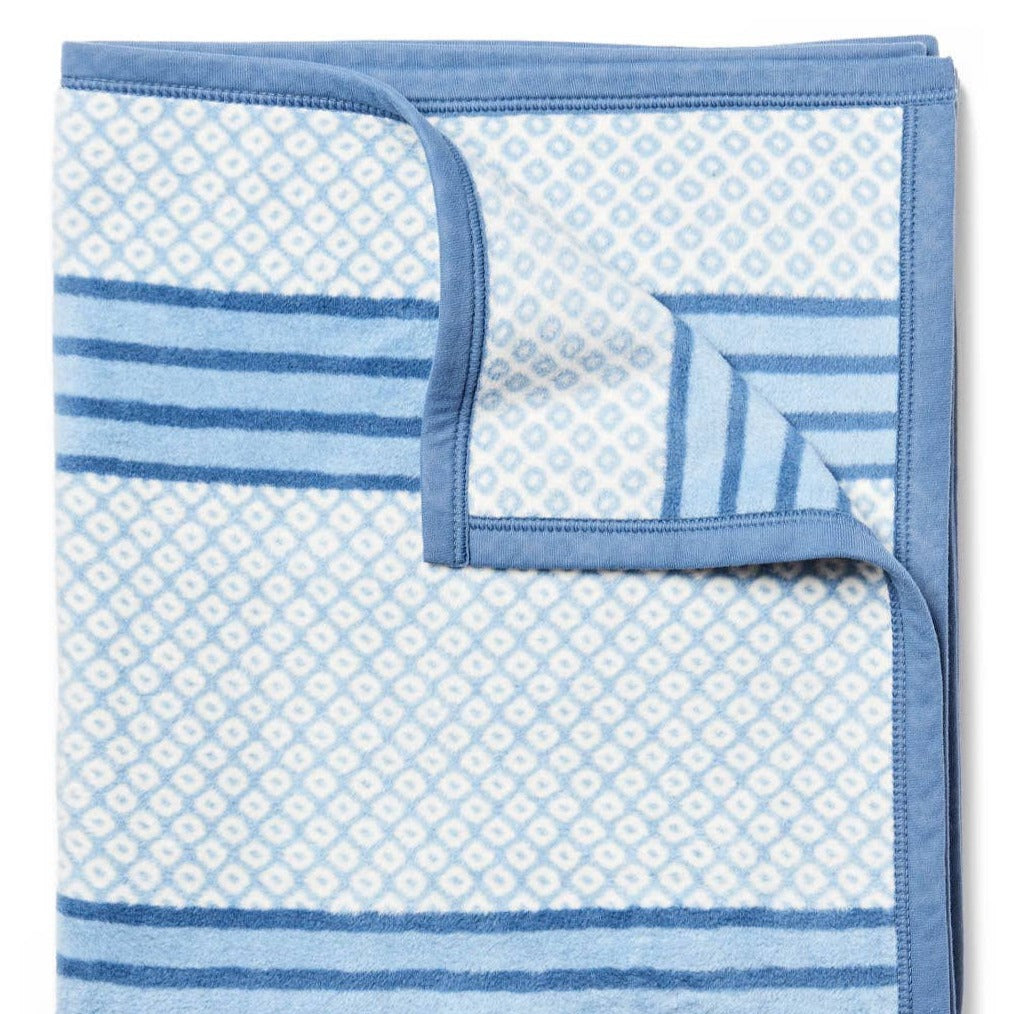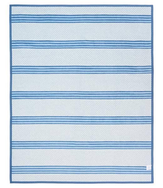 Oh Captain, my Cozy. A classic New England birdseye pattern meets blue-on-blue stripes for an eye-catching design that makes a bold and memorable warm-weather statement, from sand to sofa.