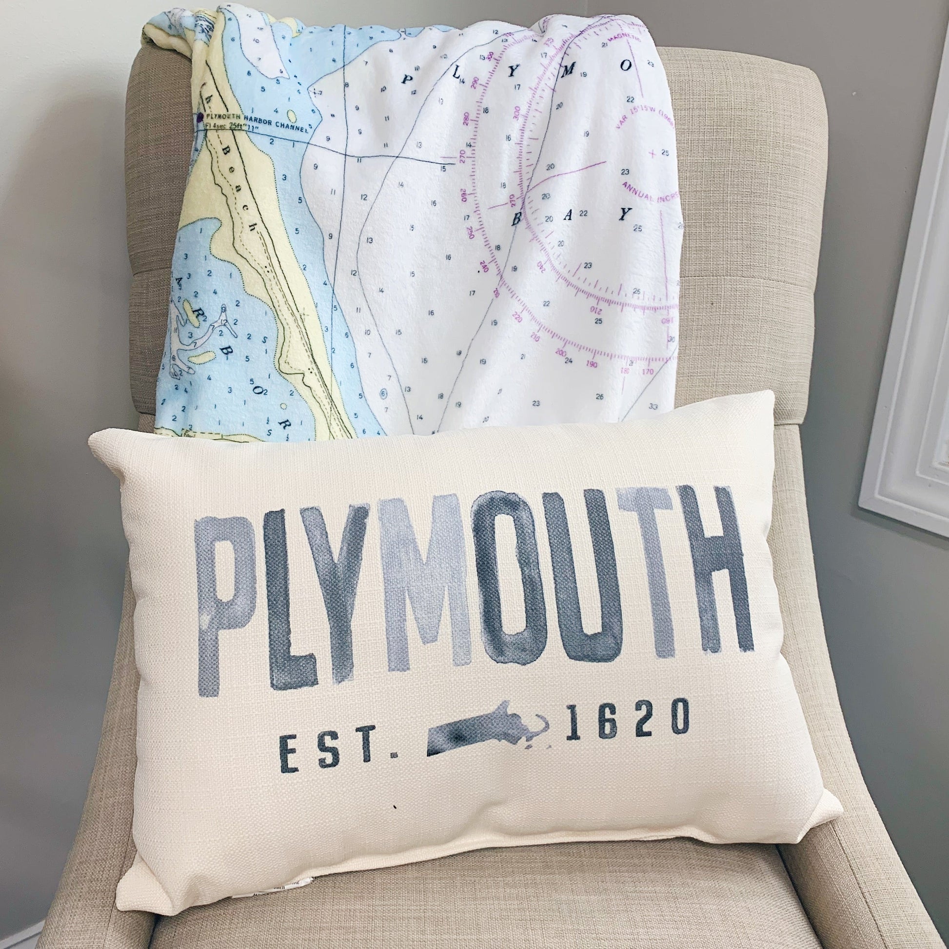 Plymouth Pillow Est 1620 - Grey Watercolor Block Print