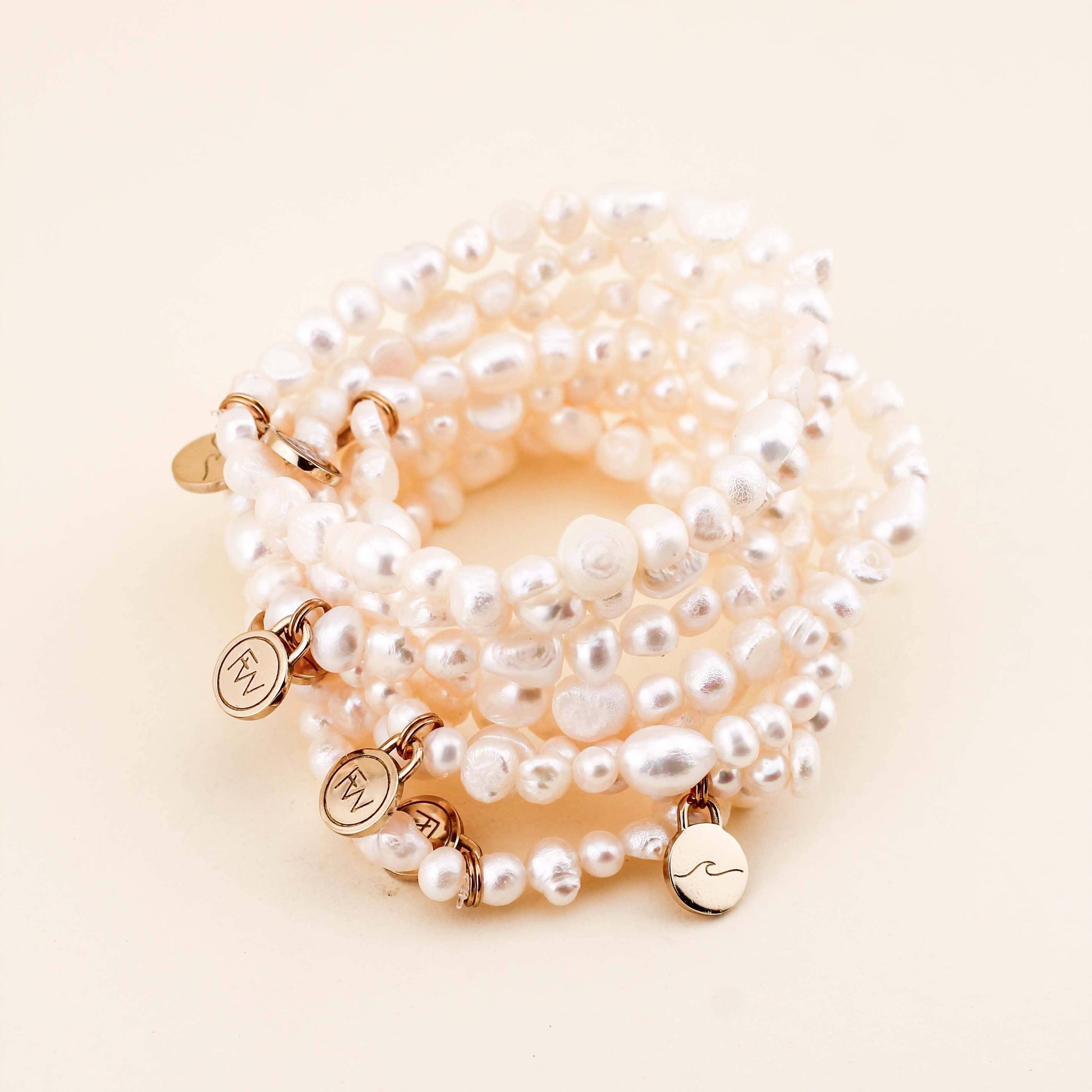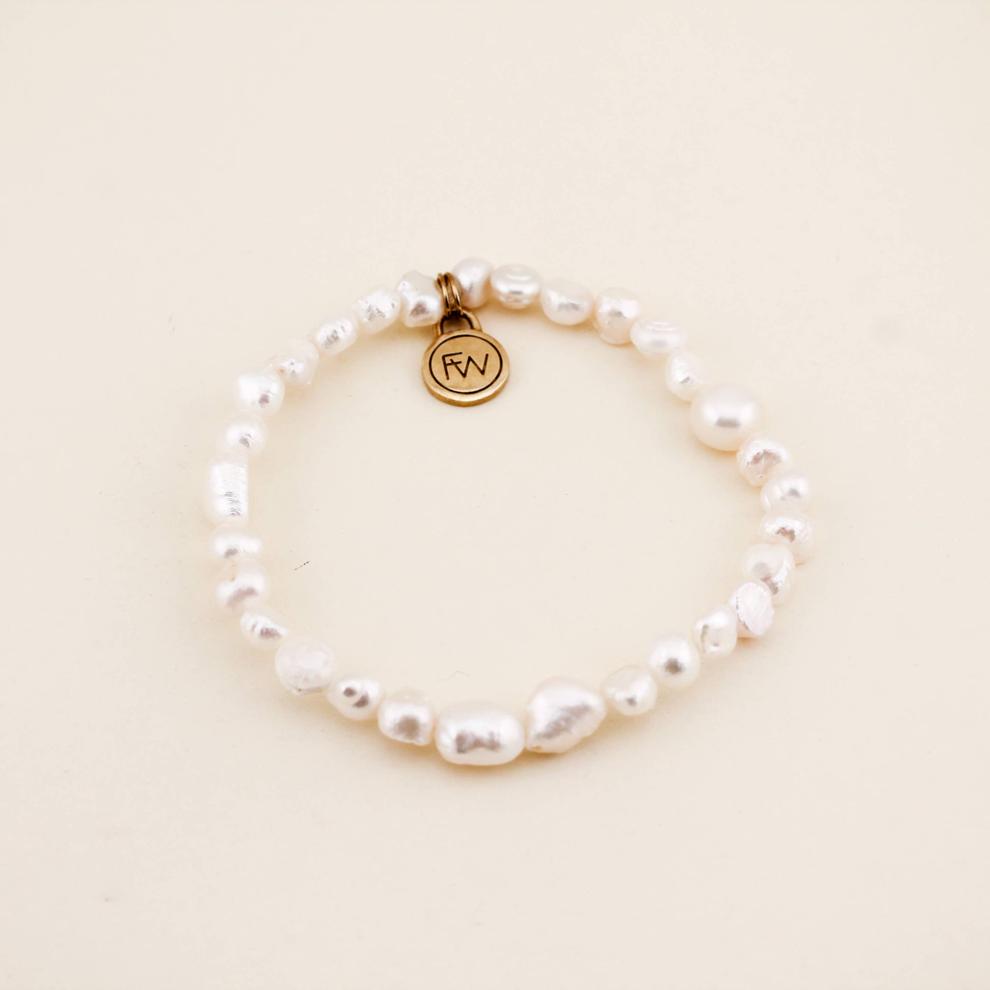 Inspired by the fresh waterways, our Pearl Beaded Bracelet features 6mm freshwater pearls beads and our solid brass charm. A perfect touch to any outfit!